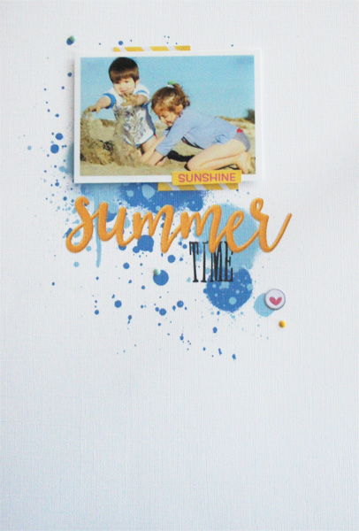 In France, January was cold and rainy... this made me long for the sun so I decided to use my photos taken during my last holidays in October and create a layout with some sunshiny colors.